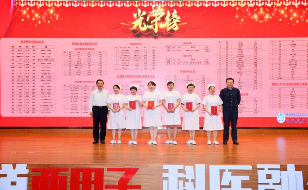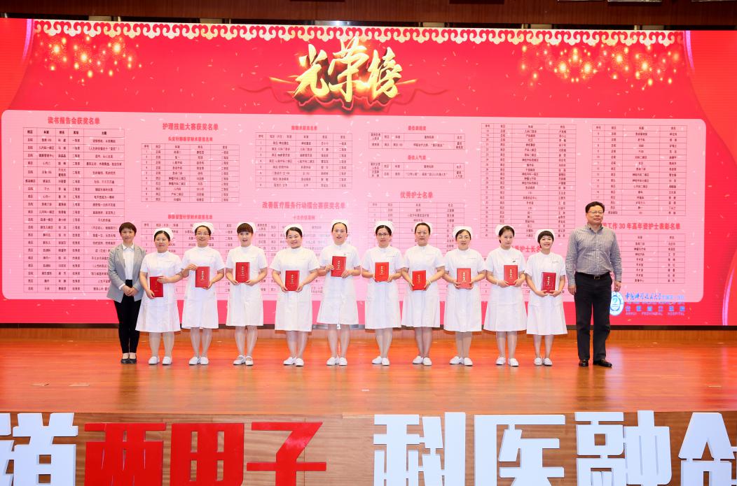 南区副院长王锦权宣读了护士节表彰名单,院领导为读书报告会20名优秀选手、护理技能大赛28名获奖选手、改善医疗服务行动擂台赛11名优秀选手、集团40名优秀护士、8名坚守临床一线30年护士及20名优秀护士长颁发了荣誉证书并给予鼓励。