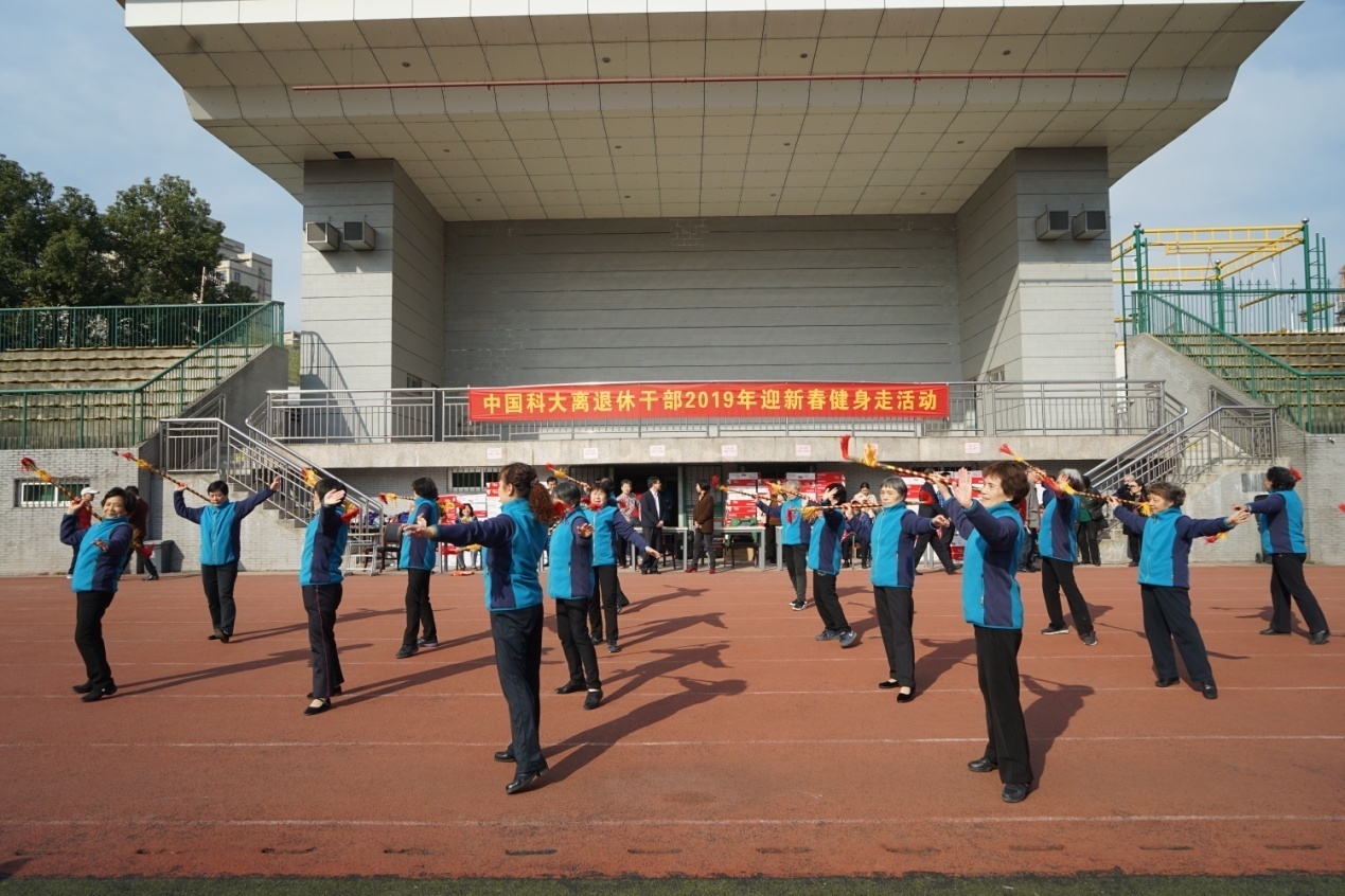 随后,何淳宽宣布中国科大离退休干部2019年春季健身走活动正式开始。随着一声发令枪响,老年体协莲湘队开始了精彩的表演《荷塘月色》。悠扬的节奏,灵活的舞姿,为春日的运动场增添了活力。