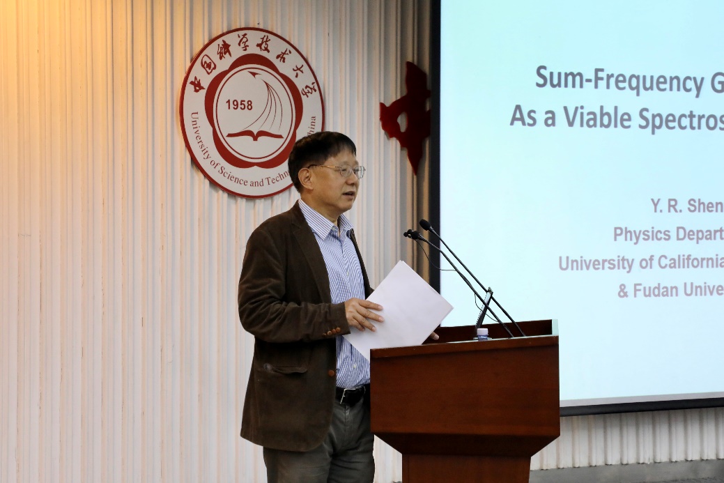 4月8-9日,应中国科大合肥微尺度物质科学国家研究中心国际功能材料量子设计中心(ICQD)邀请,光学领域顶尖学者、美国加州大学伯克利分校教授沈元壤院士访问我校,并以“合肥大师论坛”和ICQD月度演讲为平台,作了题为“Sum-Frequency Spectroscopy”精彩学术报告。报告会由ICQD联合主任张振宇教授主持。