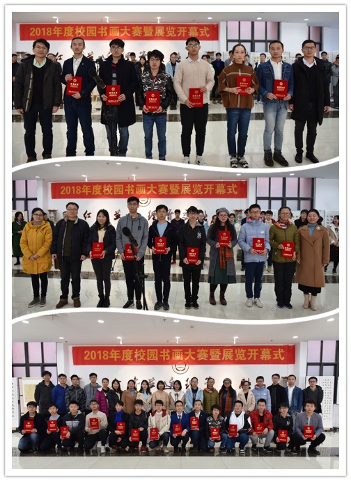 为弘扬书画这一中华民族优秀传统文化,丰富大学生的文化艺术生活,由校团委、管指委、图书馆网络案联合团总支、图书馆主办,校学生双馨书画协会、校芳草青协图书馆志愿服务分队、校蜗壳画社承办的校园学生书画大赛展览开幕式暨颁奖典礼1218日中午在东区图书馆二楼大厅举行。