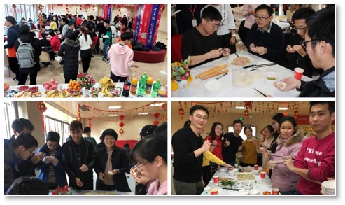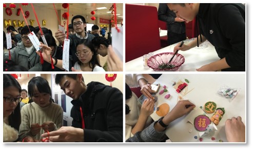 活动现场还设有传统文化氛围浓厚的比如捏面人、猜灯谜、编中国结等小游戏,同学们个个都情绪高涨,满怀热情,感受到彼此的心更贴近了。游戏结束后,同学们吃着自己的劳动成果,幸福的微笑洋溢在每个人的脸上,呈现出一幅温馨的画面。