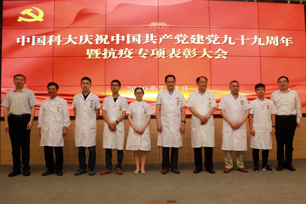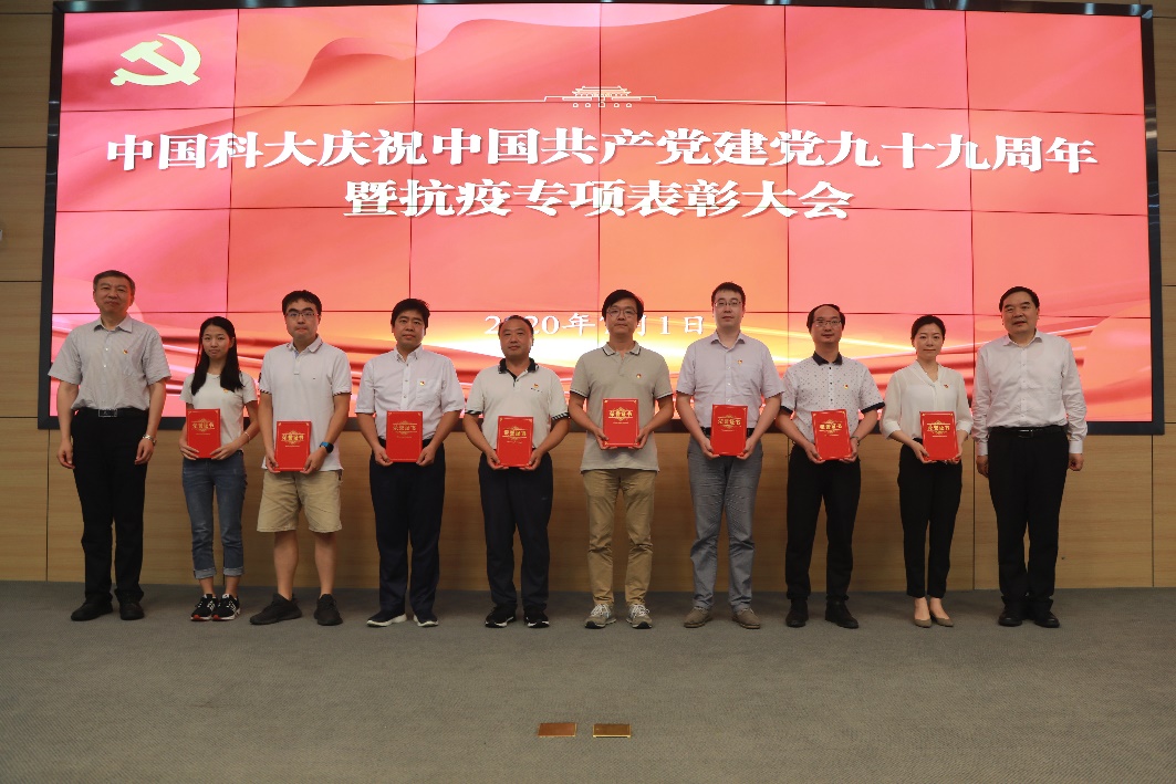 大会第二阶段,举行中国科大庆祝中国共产党建党99周年暨抗疫专项表彰大会。校党委副书记蒋一宣读了学校关于表彰新冠肺炎疫情防控中先进集体和先进基层党组织、先进个人和优秀共产党员的文件。