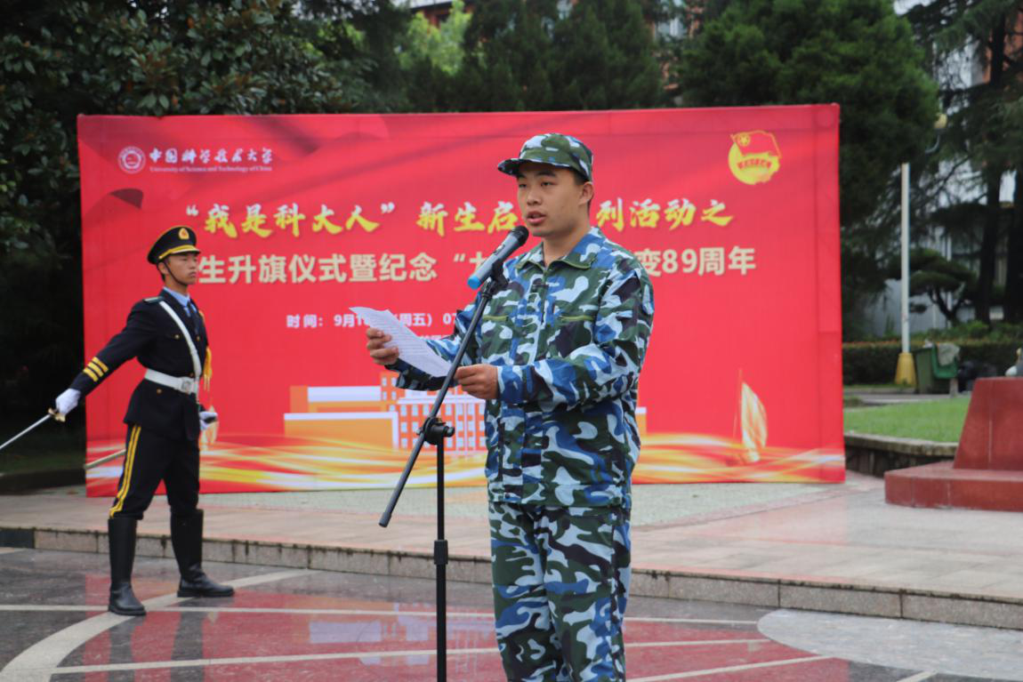 校党委副书记何淳宽在讲话中指出,“九·一八”事变是中国人民抗日战争的起点,揭开了世界反法西斯战争的序幕,我们要牢记在民族危亡的历史关头,中国共产党以卓越的政治领导力和正确的战略策略带领全国人民取得抗日战争伟大胜利。他表示,中国科大由老一辈革命家和科学家共同缔造,承载着光荣与梦想,并始终与祖国和时代的需求同行。他强调,一代代科大人要向革命先烈和老一辈科学家学习,传承“科教报国、追求卓越”的初心使命。他期望,新生们能秉持中国科大的光荣传统,争做“六有”大学生,将爱国主义情怀融入个人的理想和追求中去,沿着英烈们开辟的复兴之路奋力向前,为加快推进中国特色、科大风格的世界一流大学建设贡献力量,为民族复兴铺路架桥,为祖国建设添砖加瓦!