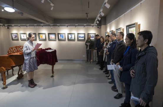 一首欢快优美的钢琴独奏《向阳花》为本次画展拉开了序幕,参加活动的老师与同学们在展览现场认真参观,亲切互动。展厅内优美的琴声不绝于耳、前来参观的同学更是络绎不绝。