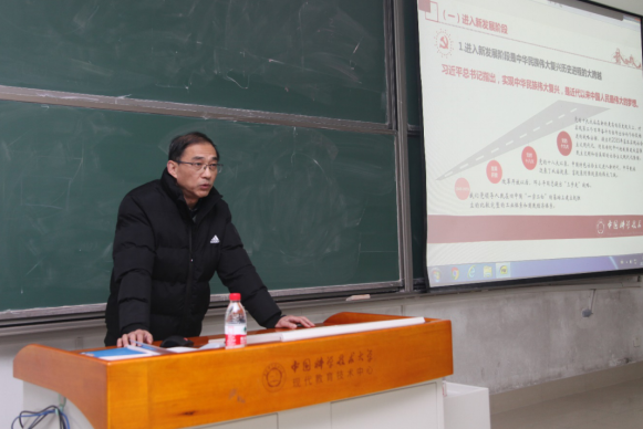 2021年1月6日下午,在第五教学楼5102教室,中国科大学习贯彻党的十九届五中全会精神宣讲团成员、校党委常委、副校长王晓平作十九届五中全会精神宣讲。地球和空间科学学院、饮食服务集团、校医院的师生员工代表聆听了宣讲报告,报告会由地球和空间科学学院党委书记刘斌主持。