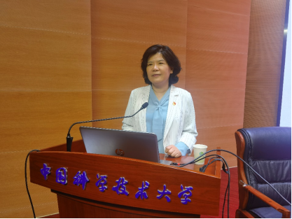 为贯彻落实《中国科学技术大学党史学习教育实施方案》,2021年5月26日下午,校党委常委、总会计师黄素芳在水上报告厅为公共事务学院全体师生、软件学院党员师生、财务处全体党员上了题为《弘扬“两弹一星”和老一辈科学家精神,坚定中国科大报国之志》的党史学习教育专题党课。会议由公共事务学院党委书记丁望斌主持。