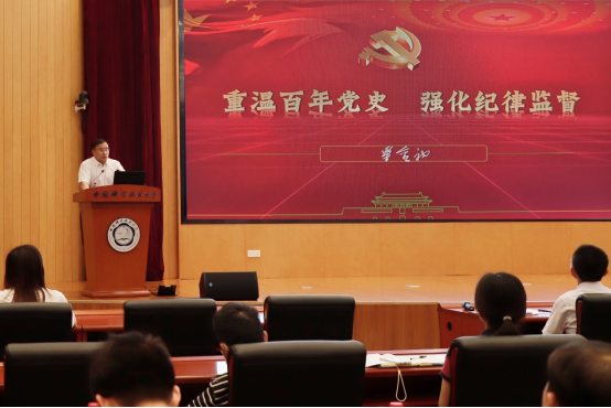 “百年党史既是一部波澜壮阔的社会革命史,也是一部激浊扬清的自我革命史”。6月9日下午,校党委副书记、纪委书记毕金初以《重温百年党史 强化纪律监督》为题,在物质科研楼三楼报告厅作党史学习教育专题报告。校纪委委员,院级党组织纪检委员及院系、重点科研机构教工党支部纪检委员,管理学院、数学学院等单位师生代表,纪检监察巡察党支部全体党员参加报告会。报告会由校纪委副书记杨凡主持。