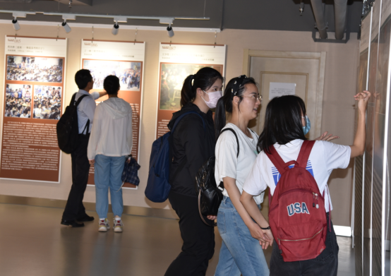 本次展览以精选的一百幅当代艺术名家的美术经典作品,展现中国共产党的百年奋斗历程。同学们驻足画作前认真欣赏,了解作品创作的背景,通过画作里丰富的场景和人物细节展现,回顾历史,感悟初心使命。