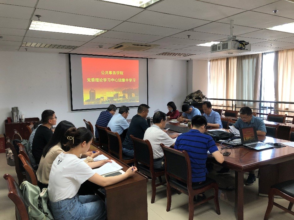 2021年6月23日下午,公共事务学院党委理论学习中心组在管理科研楼1108会议室召开2021年度第四次集中学习会。会议由学院党委书记丁望斌主持,党委理论中心组成员以及各支部书记参加会议。