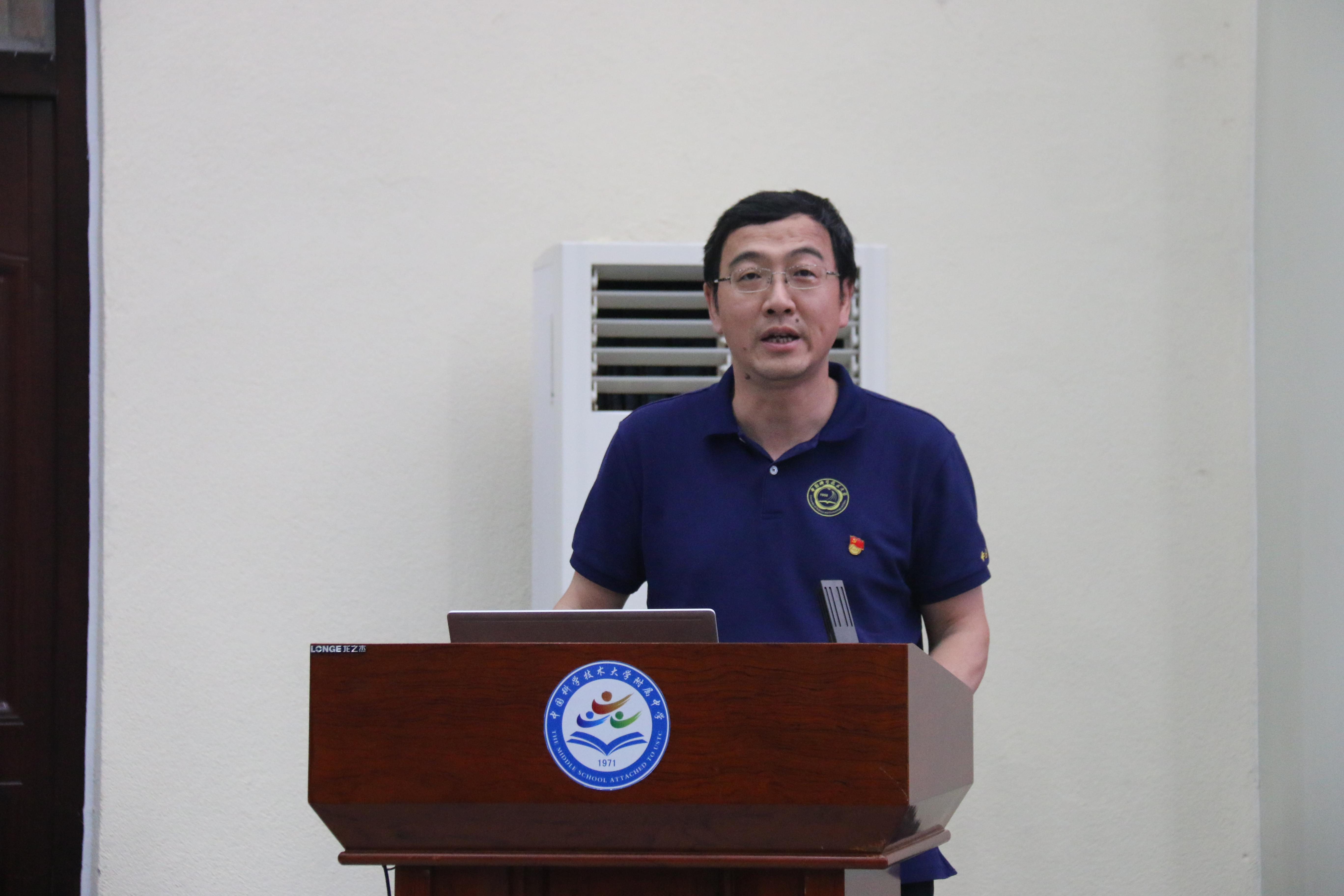 6月29日,中国科学技术大学基础教育集团党委书记、主任马运生在科大附中报告厅开展党史学习教育专题党课活动。集团和所属单位领导以及集团全体党员及入党积极分子共计100余人参加了党课学习。党课由集团副主任徐磊主持。