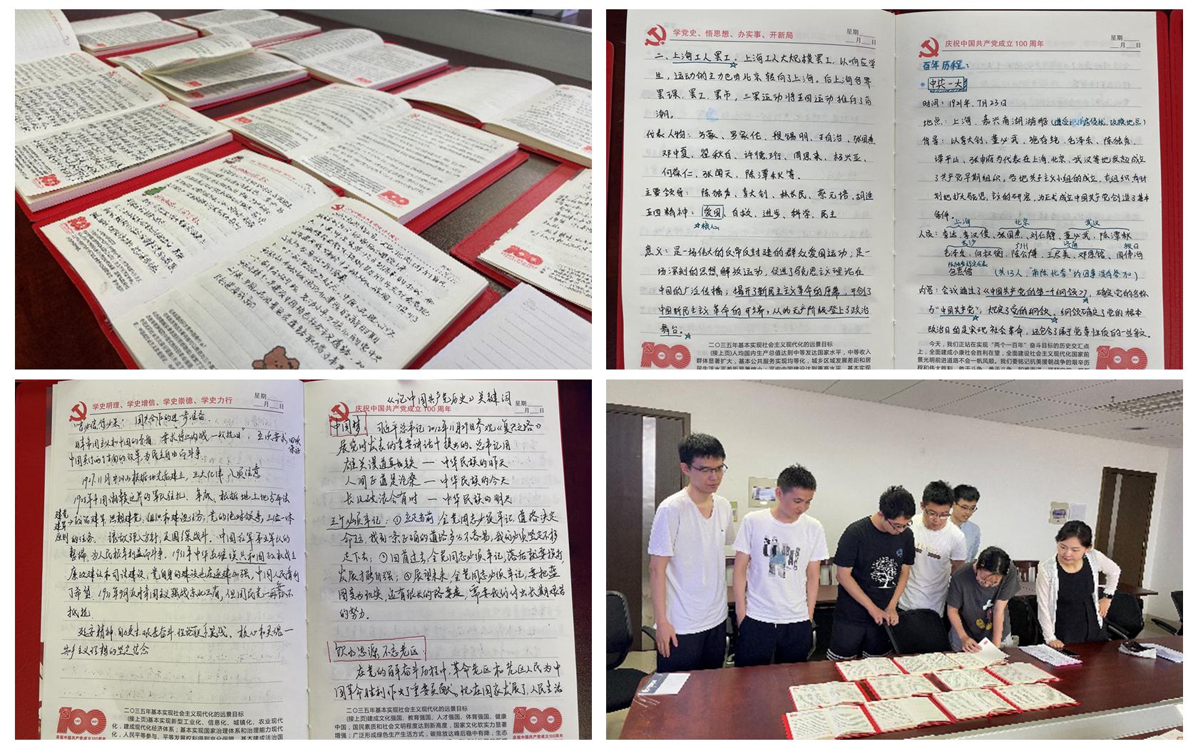在“两个一百年”奋斗目标历史交汇的关键节点,回首过往,红船精神、井冈山精神、长征精神、延安精神、西柏坡精神……我们党百年光辉历史里镌刻的红色精神熠熠生辉。数学科学学院全体党员积极响应中央关于全党集中开展党史学习教育的号召。五月初,研究生计算与应用数学第二党支部联合学院全体学生党支部开展了“学党史 悟思想 亮学风”党史笔记展评活动。展评活动以晒笔记、评先进、谈感悟三个方面进行。评选标准主要突出三个方面:一是重点查看党员是否按照教育内容进行学习记录;二是看笔记内容记录是否完整。通过检查笔记的页数、字数、篇数,看能否严格落实理论学习计划,认真记录各种学习内容;三是看字迹页面是否美观,书写是否工整认真,页面是否干净、格式是否规范正确。经过评选,周容、魏歆两位同学获得一等奖,吴天、侯仕金、卢金洋获得二等奖、黄情、马阳玲、于克凡等人获得三等奖。在展评现场,一本本优秀党史学习笔记犹如一幅幅耐人寻味的画卷,吸引着同学们参观学习、品评交流,汲取养分。同学们认真翻阅,相互交流,作比较,找差距,达到了共同学习、取长补短的效果。