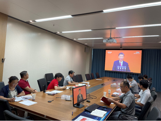 陈向军领学了人民日报社论《铸就百年辉煌 书写千秋伟业》和人民日报评论员文章《书写了中华民族几千年历史上最恢宏的史诗》。与会人员集体观看习近平总书记在庆祝中国共产党成立100周年“七一勋章”颁授仪式上重要讲话精神的新闻视频。