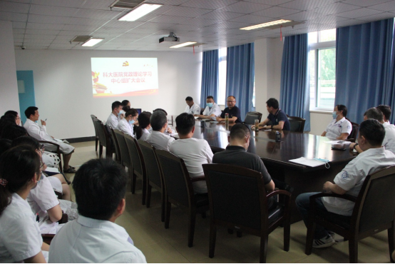 7月19日下午,校医院在三楼会议室组织召开党政理论学习中心组(扩大)会议,集中学习习近平总书记在庆祝中国共产党成立100周年大会上的重要讲话精神。会议由直属党支部书记金长江主持,校医院党政理论学习中心组成员、全体党员、入党积极分子、全体团员参加学习会。
