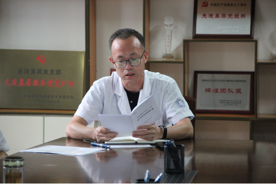 他要求,医院直属党支部要结合《中共中国科学技术大学委员会关于庆祝中国共产党成立100周年的工作方案》和《中共中国科学技术大学委员会扎实开展“党旗在基层一线高高飘扬”活动方案》的总体目标、主要任务和工作要求,学习理论、指导实践、推动工作。更好的联系实际,为校内广大师生员工提供更优质的服务,将习近平总书记“七一”重要讲话精神落实到工作中,充分发挥党员的先锋模范作用、党员领导干部的表率作用和基层党组织的战斗堡垒作用,让党旗在基层一线高高飘扬。