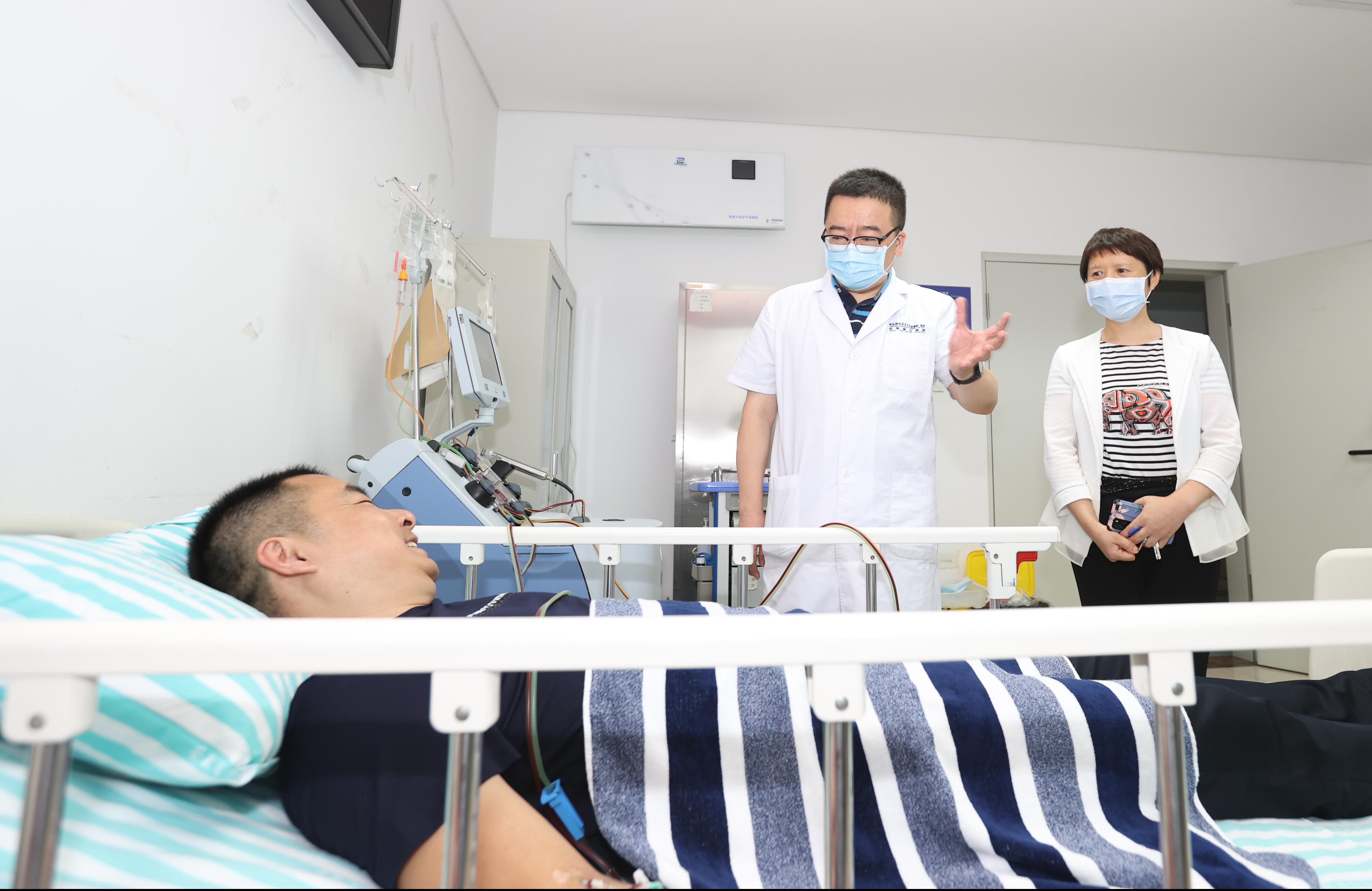中国科大附一院党委书记刘连新,党委委员、工会主席储晓红前往采集点慰问胡新凯,并送上鲜花和慰问金,代表医院感谢胡新凯的助人义举、大爱善举。
