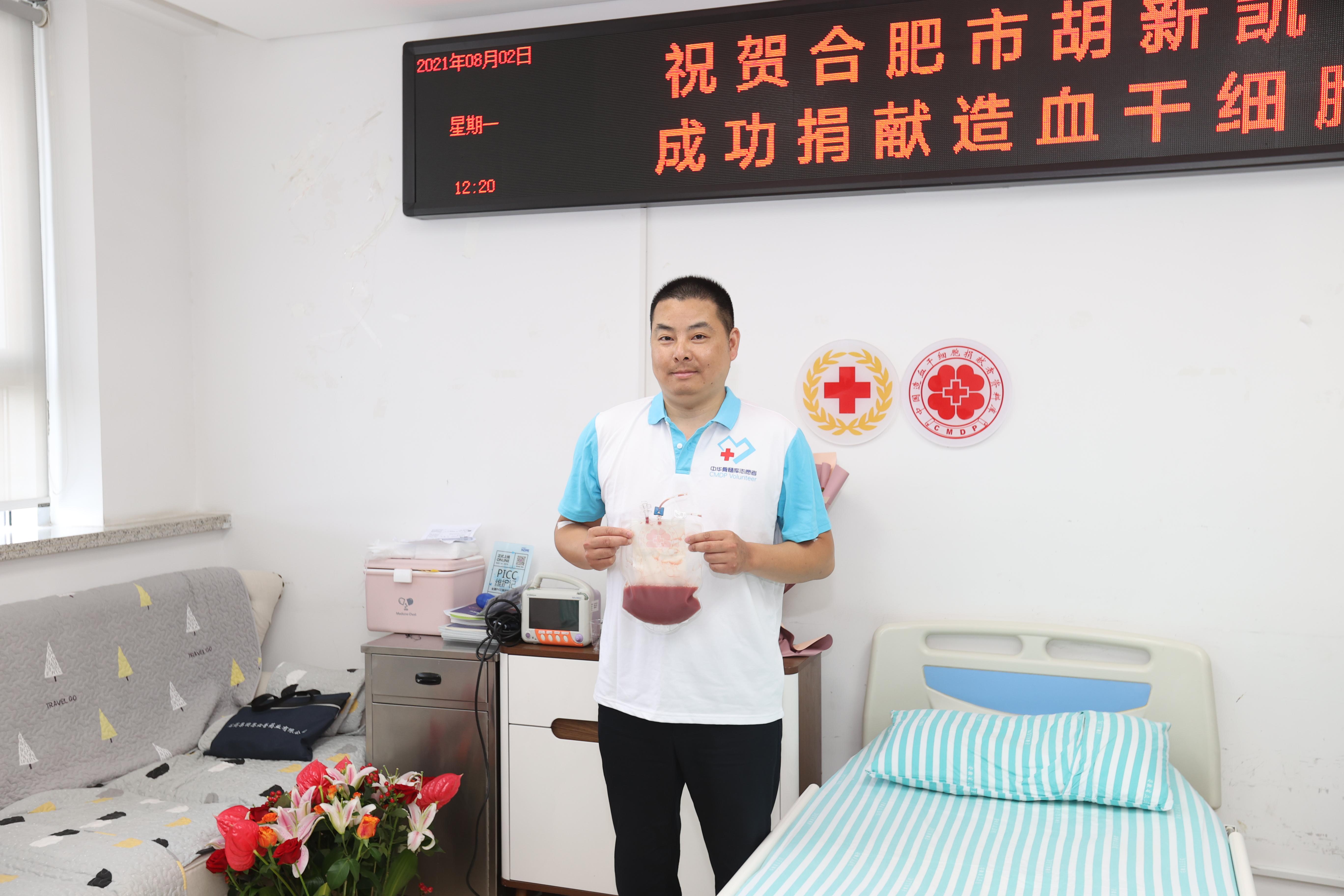 8月2日上午,在中国科大附一院血液内科,经过4天的外周血动员和4个小时的采集,刚刚度过40岁生日的中国科大附一院感染病院检验科主管技师胡新凯成功捐献造血干细胞270毫升,这份“生命的种子”第一时间运送到广州中山大学附属第一医院,救治正在那里等待移植救命的一位白血病患者。