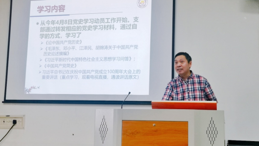 会上,程文龙再次带领大家一起学习了校党委关于召开党史学习教育专题组织生活会的文件通知精神,并代表支部向与会同志报告了半年以来教工党支部的工作情况特别是开展党史学习教育情况,通报了党支部委员会检视问题的情况以及下一步整改措施与努力方向。