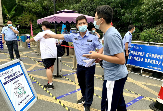 迎新期间,经联络,辖区公安机关分别在中校区两个门驻点警车两辆,6名派出所民警参加保障,4名交警铁骑参与路面交通疏导。会同辖区公安机关停业通信运营商网点2个,行政处罚网点负责人1人,退还新生非必要办卡27张,处理试图进校推销办卡人员3人,其中一人因翻墙进入被公安机关带走,中校区门外共清理、驱散各类推销办卡人员100余人次,全力保障新生入校秩序和安全。