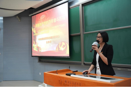 吴梅芳梳理了中共一大至七大召开的时代背景、中心议题以及主要贡献,用一件件历史事实和一组组感人数据充分阐释了中国共产党为什么能够长生不衰、生机无限的根本原因。报告中,吴梅芳还时常引用诸如“独臂将军”贺炳炎、“藏族女红军”姜秀英、“断肠明志”陈树湘等人的英雄事迹来激励广大青年学子从学习党史中汲取精神力量,努力做到习近平总书记强调的学史明理、学史增信、学史崇德、学史力行,学党史、悟思想、办实事、开新局。报告的最后,吴梅芳寄语同学们:站在新的历史起点上回望历史,要理清走过的路,辨明脚下的路,认准前行的路。铿锵有力的话语掷地有声,引起现场一片雷鸣般的掌声。