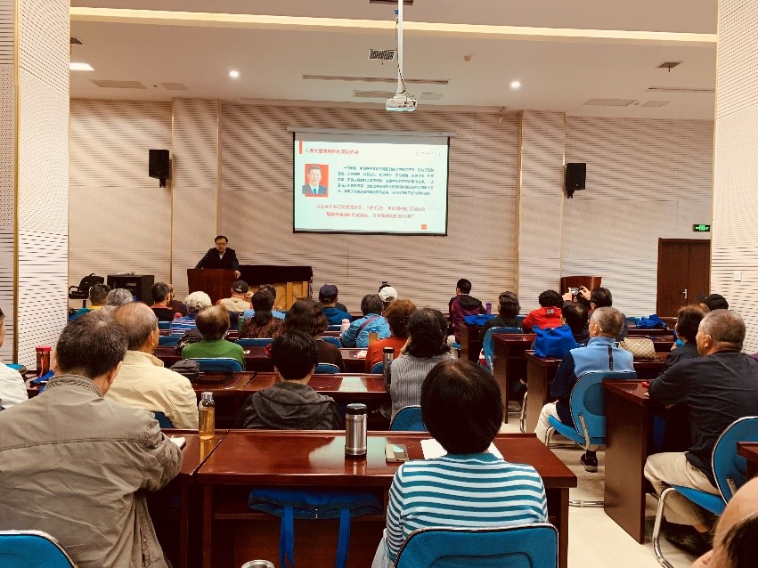 10月9日上午,中国科大学习贯彻习近平总书记“七一”重要讲话精神专题宣讲团成员、校党委副书记傅尧在南区图书馆老年大学教室作题为《学习贯彻习近平总书记“七一”重要讲话精神——传承红色基因 赓续科大精神》的宣讲报告,各离退休干部党支部书记、支部委员、行政管理片片长、老年团体、老年大学负责人共100多名离退休骨干代表聆听了此次宣讲报告。宣讲报告由离退休干部党委书记兼离退休干部工作处处长刘艳主持。