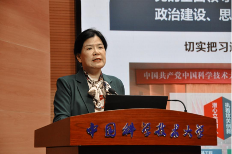 黄素芳将“七一”重要讲话精神与中国科大发展相结合,指出要把发展科技、培养人才和增强创新更好结合。她强调,要深入学习贯彻习近平总书记在清华大学考察时重要讲话精神、关于中国科大系列重要指示精神,增强教育自信、建设高质量教育体系。要坚持和加强党对学校工作的全面领导,深度融入国家发展战略,围绕“潜心立德树人,执着攻关创新”中心任务,以本为基,以研为峰,培养全面发展的一流创新人才,建设德才兼备的高水平师资队伍,弘扬爱国创新的科大文化,提升社会服务水平,构建高效的现代化治理生态。黄素芳表示,要把党史学习教育和“我为师生办实事”实践活动与中央巡视整改相结合,把“当下改”与“长久立”紧密结合,扎实做好巡视“后半篇文章”,为推动中国特色、科大风格的世界一流大学建设开新局、立新功。