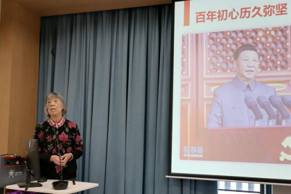 最后,汪晓莲老师以“以史为鉴、开创未来,不忘初心、科教报国”为落脚点,号召广大师生从深入学习理解总书记“七一”重要讲话中汲取精神力量,“仰望星空,脚踏实地,胸怀理想,成就未来”。