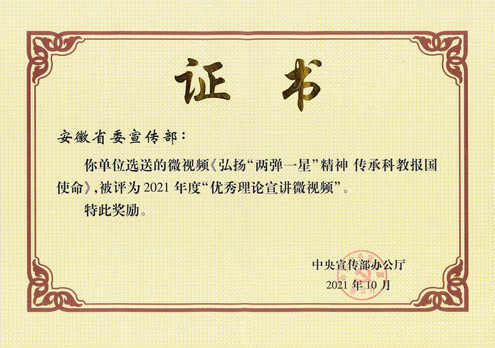 我校宣讲微视频《弘扬“两弹一星”精神 传承科教报国使命》获中宣部表彰