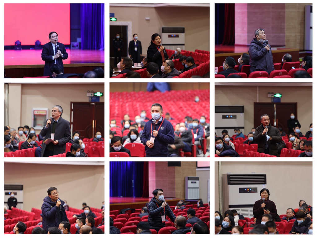 在代表质询阶段,代表们就大家关心的人才培养、科学研究、学科交叉、资产管理、科教融合、智慧养老、校区连接、教职工职业发展、校园文化建设、民生工程等热点问题和重要事项进行大会质询,有关校领导和部门负责人分别做了介绍和解答。