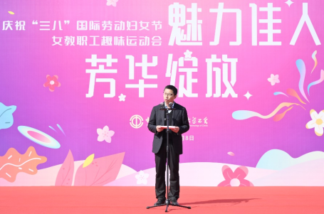 3月8日下午,校工会举办的庆祝“三八”国际劳动妇女节“魅力佳人 芳华绽放”系列活动在东区操场隆重开幕。校党委常委、副校长周丛照出席活动并致辞,900多位女教职工参加了趣味运动会活动。