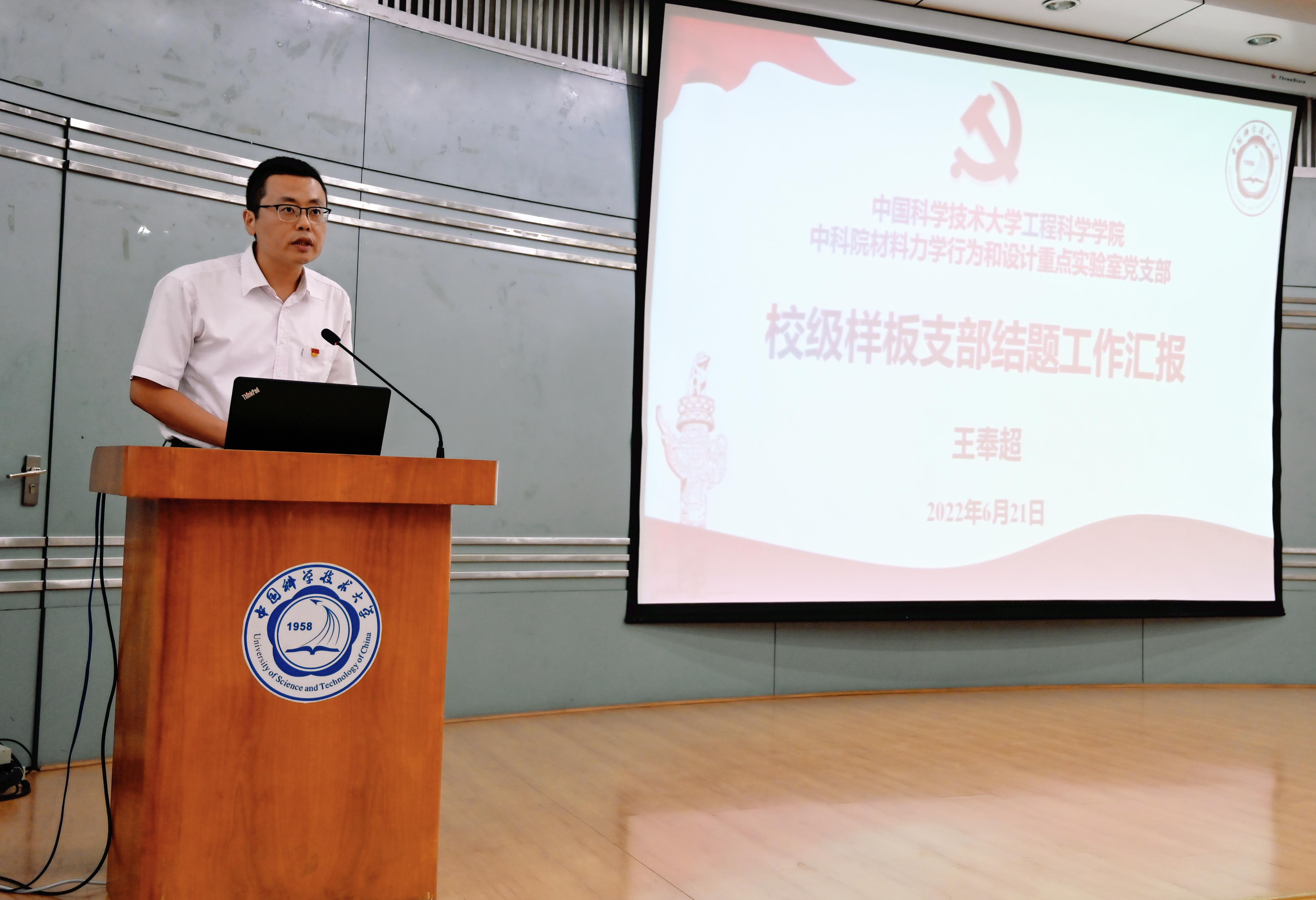 在党员教育培训环节,“安徽省高校先进基层党组织”“首批校级党建工作样板党支部”中科院材料力学行为与设计重点实验室党支部书记王奉超,“首批校级党建工作样板党支部”院本科生党支部常务副书记王储作交流发言。他们分别从党建引领科研、党建与中心工作深度融合、支部共建,开展党、团、学联动,发挥“头雁”功能,提升理论学习的浓度、主题党日的鲜味、组织生活的实效等方面做了分享。