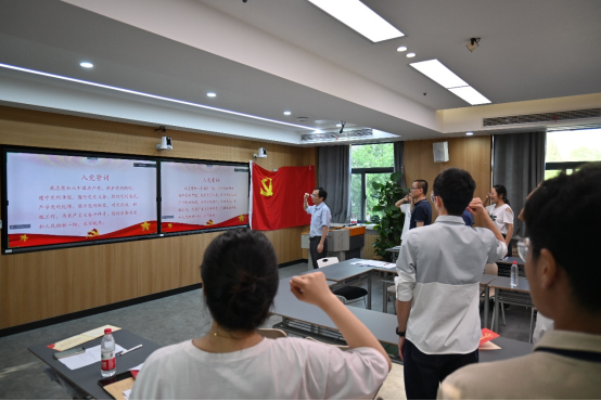 与会领导向毕业生党员发放了政治生日卡,鼓励他们牢记入党初心,在人生新阶段勇于担当使命。全体党员重温了入党誓词。