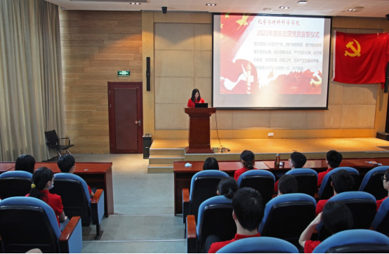 在学院党委副书记千坤的主持下,宣誓仪式在庄严的国歌中拉开序幕。宣誓仪式上,同志们佩戴党员徽章、高举右拳,在高分子科学与工程系总支书记胡进明的带领下庄严宣誓:“我志愿加入中国共产党,拥护党的纲领,遵守党的章程,履行党员义务,执行党的决定,严守党的纪律,保守党的秘密,对党忠诚,积极工作,为共产主义奋斗终身,随时准备为党和人民牺牲一切,永不叛党。”誓词铿锵有力,宣示着新党员们一心向党、以实际行动践行党的宗旨的决心。