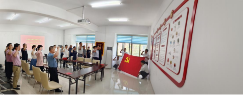 随后,在洪军的带领下,新老党员面对党旗,紧握右手,再次许下庄严承诺。铿锵有力的宣誓声,激励着党员时刻牢记入党誓词,自觉遵守党的章程,终身践行党员义务。