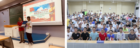 杨寿保教授精彩的报告深深触动了在场师生,同学们纷纷表示要不忘初心、牢记使命,勤奋学习,强健体魄,为祖国的科学发展贡献力量。2022级新生班主任、杨寿保教授学生李春生作为班主任代表向杨老师表示了敬意和感谢。活动最后,新生代表向杨寿保教授赠送纪念品,全体新生一起合影留念。
