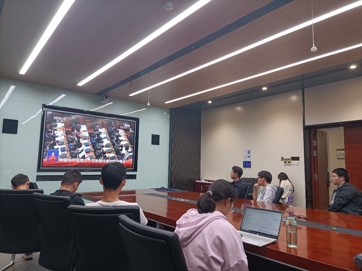 物理学院党委理论学习中心组、部分党外人士代表集中收看开幕会直播,认真聆听和学习党的二十大报告。