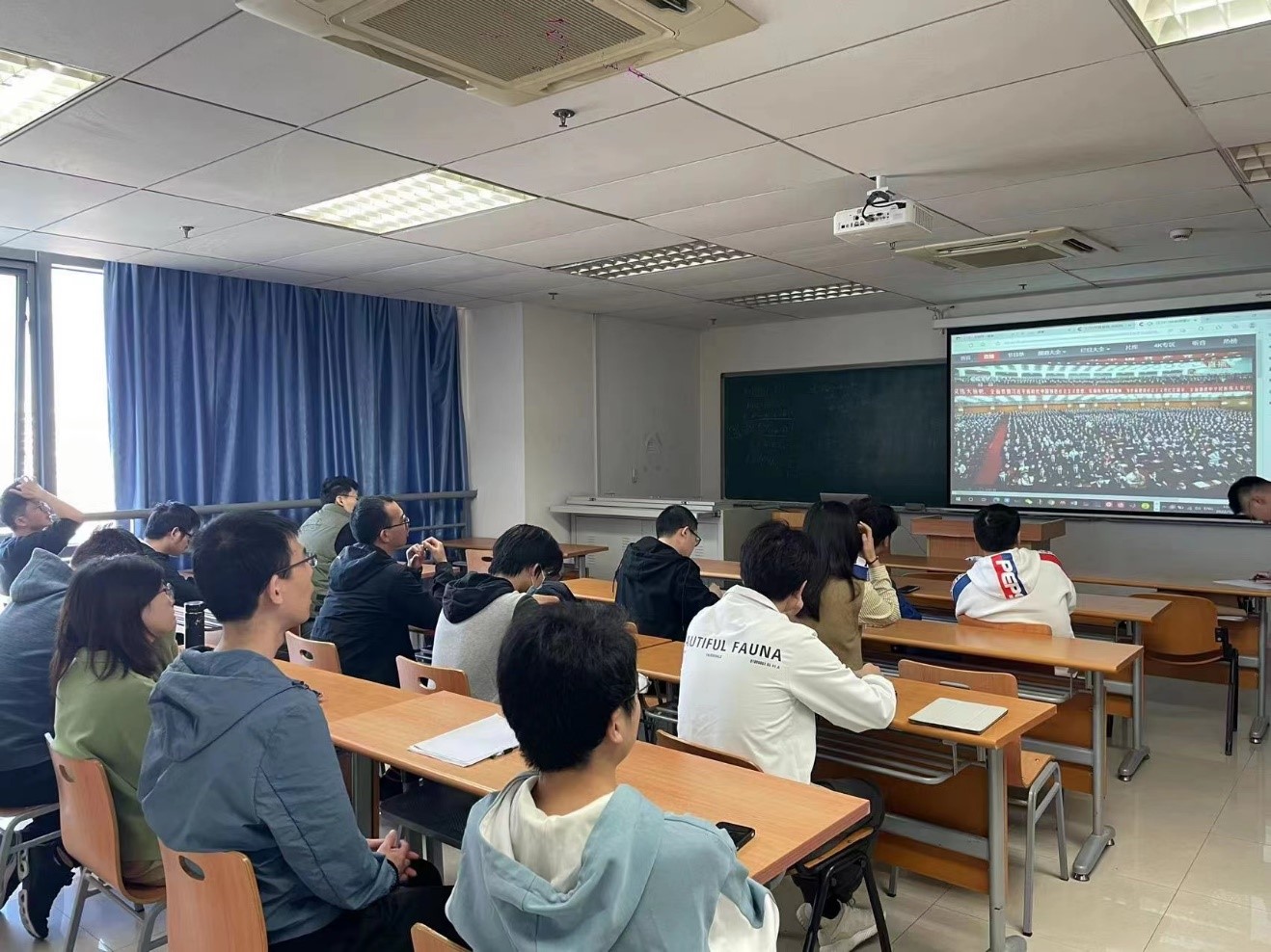 10月16日上午10时,中国共产党第二十次全国代表大会在北京人民大会堂开幕。习近平代表第十九届中央委员会向党的二十大作报告。数学科学学院党委在1508会议室、1208组织集中观看党的二十大开幕会电视直播。学院党政领导班子成员、党委委员,师生代表到场认真聆听习近平总书记代表第十九届中央委员会向党的二十大作报告。