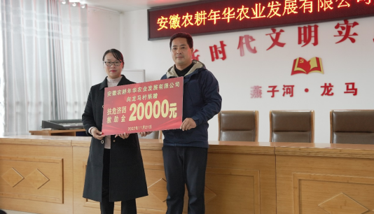 调研结束后,在龙马村党群服务中心二楼会议室,傅尧主持召开定点帮扶座谈会。龙马村党支部书记相嗣娟汇报龙马村巩固脱贫攻坚同乡村振兴有效衔接工作,学校驻龙马村乡村振兴工作队队长郭磊汇报今年定点帮扶工作。金寨富东生态农业开发有限公司和安徽农耕年华农业发展有限公司分别向龙马村捐赠扶危济困互助帮扶资金。