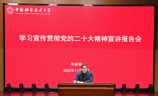11月29日下午,校党委副书记、纪委书记、国家监委派驻监察专员、校学习贯彻党的二十大精神宣讲团成员毕金初在水上报告厅作学习贯彻党的二十大精神宣讲报告,报告会由化学与材料科学学院党委书记、副院长闫立峰主持,化学与材料科学学院、管理学院200余名师生共同聆听了报告。