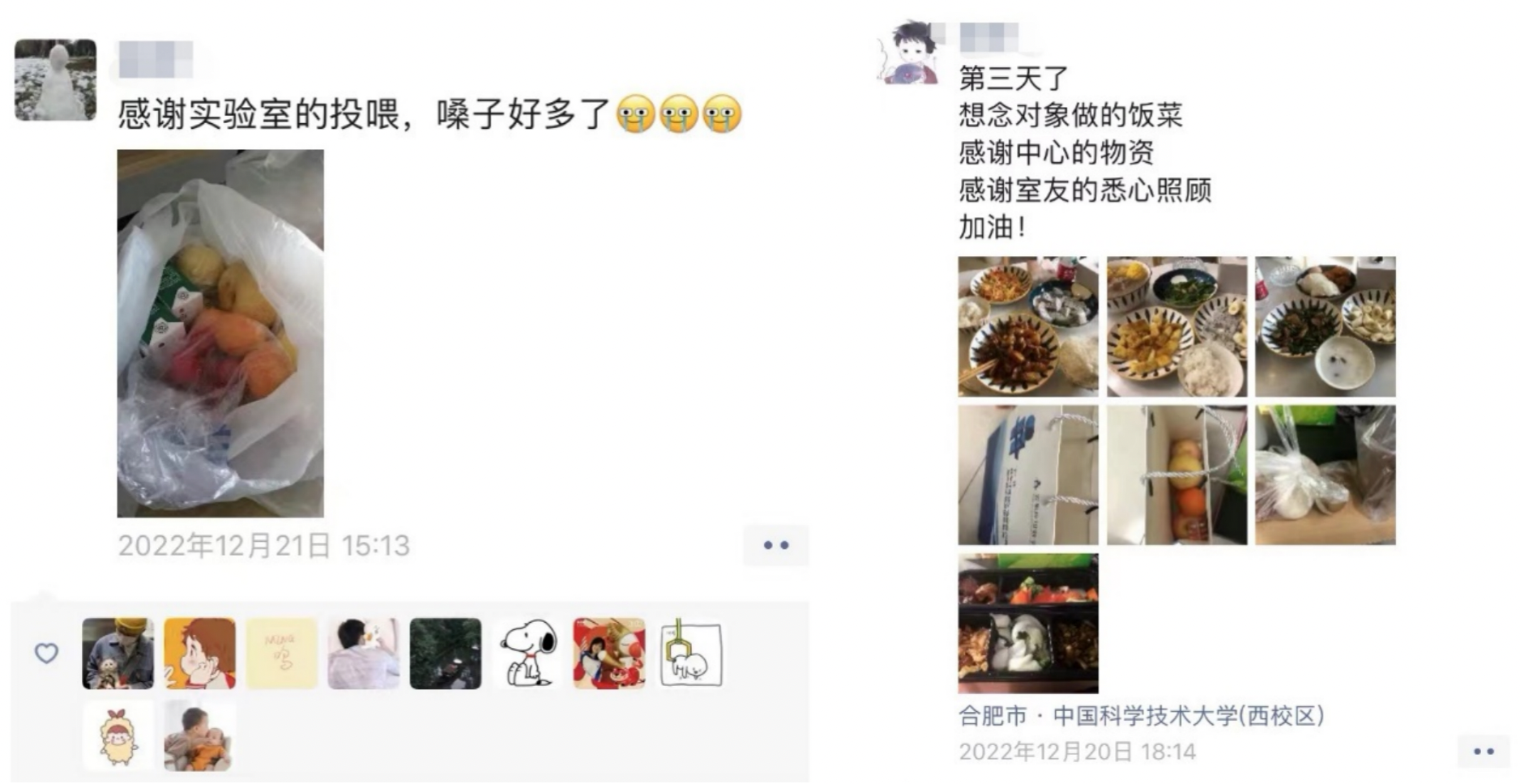 同学们们也力所能及地帮助身边身体不适的小伙伴,帮忙取外卖这种平日里认为的小事,在疫情期间却显得弥足珍贵。不少同学发圈,对来自同学的关爱表示了感谢。