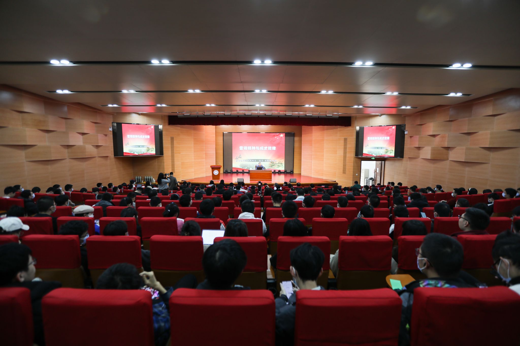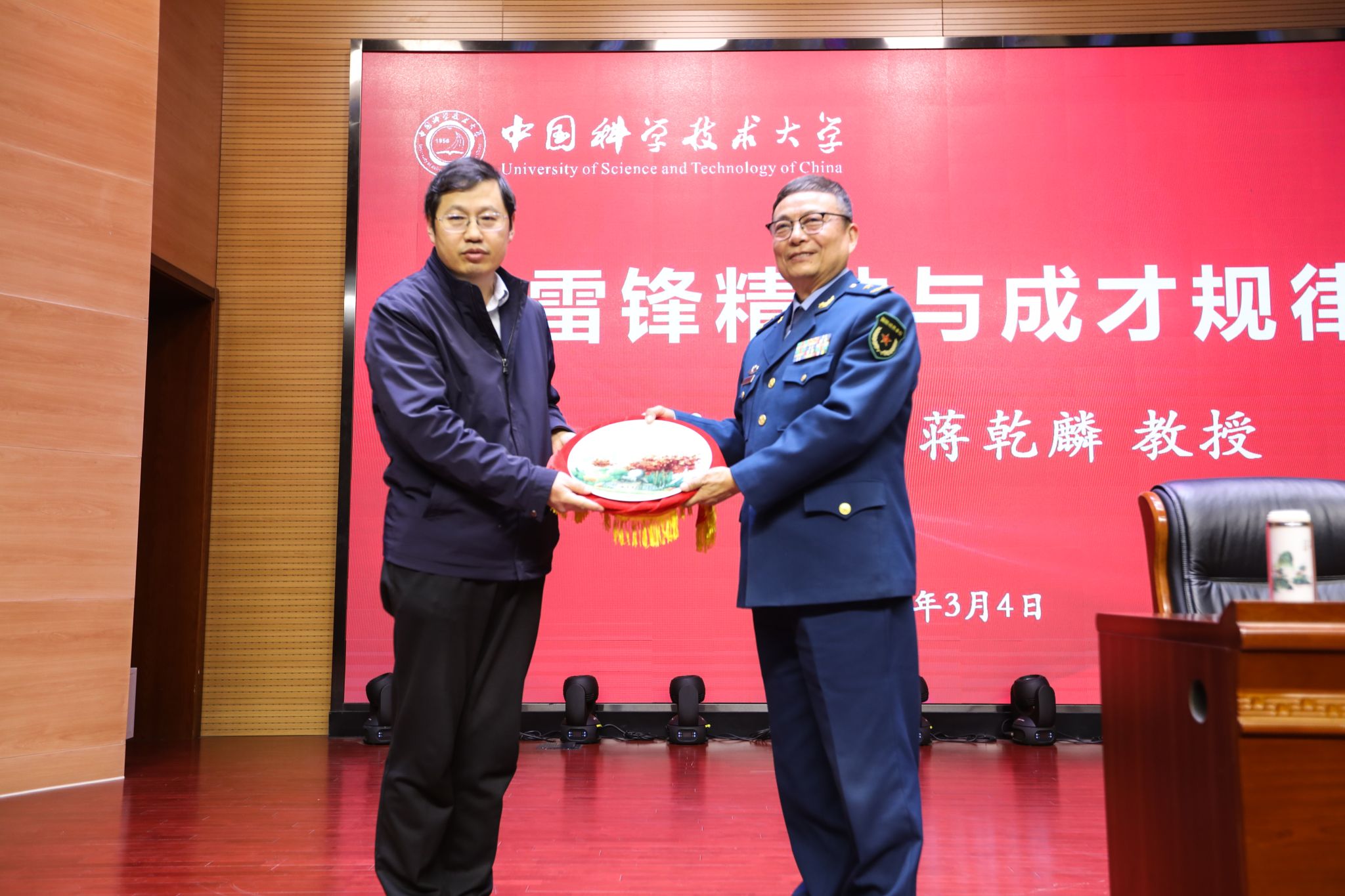 今年是毛泽东等老一辈革命家为雷锋同志题词六十周年。日前,习近平总书记对深入开展学雷锋活动作出重要指示。为深入贯彻落实习近平总书记重要指示精神,让雷锋精神在新时代绽放更加璀璨的光芒,3月4日下午,中国科学技术大学《雷锋精神与成才规律》报告会在东校区水上报告厅举行。原南京政治学院院长、博导,空军少将蒋乾麟教授受邀为我校师生作报告,报告厅内座无虚席。报告会由校党委副书记、党委宣传部部长邓建松主持。