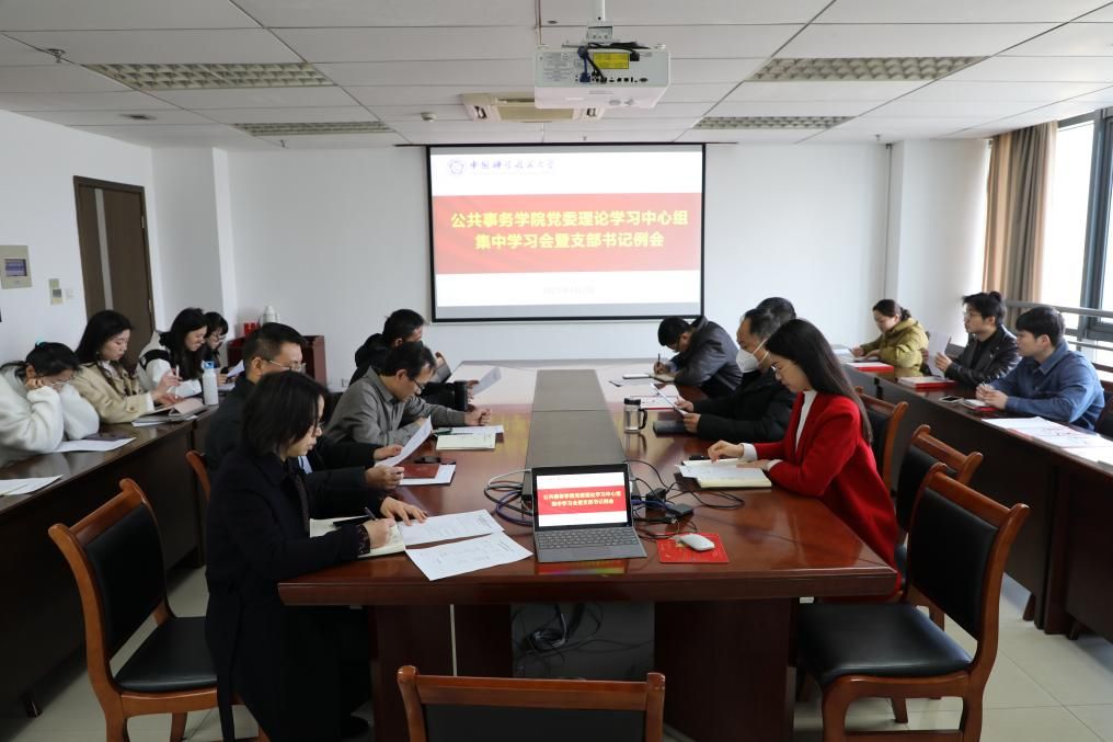 3月2日上午,公共事务学院召开本年度第一次党委理论中心组集中学习会暨支部书记例会。学院党政领导班子成员、党委委员、各党支部书记、副书记参加会议。会议由党委书记丁望斌主持。