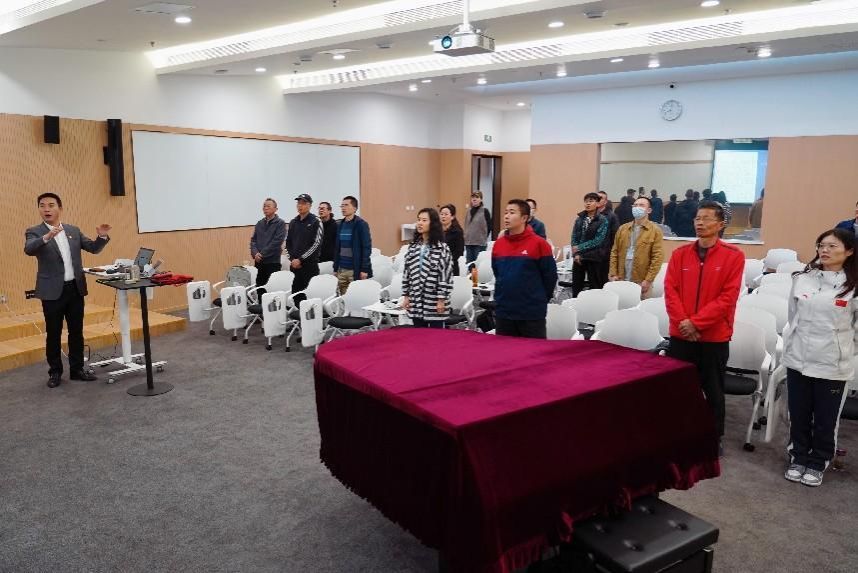 王伟华老师以电影中的红色歌曲为线索,选取大革命和土地革命战争时期、抗战时期、解放战争时期、抗美援朝战争时期、社会主义建设时期和改革开放以来不同阶段的经典作品为例,用音乐带领大家重温党的百年征程,感受过去的峥嵘岁月。《东方红》《红星歌》《我的祖国》《黄河大合唱》《义勇军进行曲》……耳熟能详的旋律响起,唤起了现场每一位党员同志的回忆和共鸣。王伟华老师表示,红色歌曲是记录广大劳动人民和无数共产党员艰苦奋斗、英勇斗争的生动史料,具有强烈的时代气息和鲜明的民族特征,希望通过艺术党课这一生动的形式,与党员同志们一起重温党史、感悟初心,为实现党的二十大提出的目标任务团结奋斗。