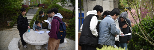 参加活动的同学以小组为单位,收到活动材料后,各组结合材料中的地图,找出答案、排除疑点,寻找题目对应的任务点,由工作人员确认,即可获得奖励。题目涵盖了中外知名科学家,兼顾了历史性与趣味性,让同学们在探索中了解老一辈科学家的故事,通过参与活动去发散思维,收获乐趣。活动中同学们通过小组沟通协作,顺利完成活动任务,在趣味活动中重走科学家之路,深悟科学家精神。