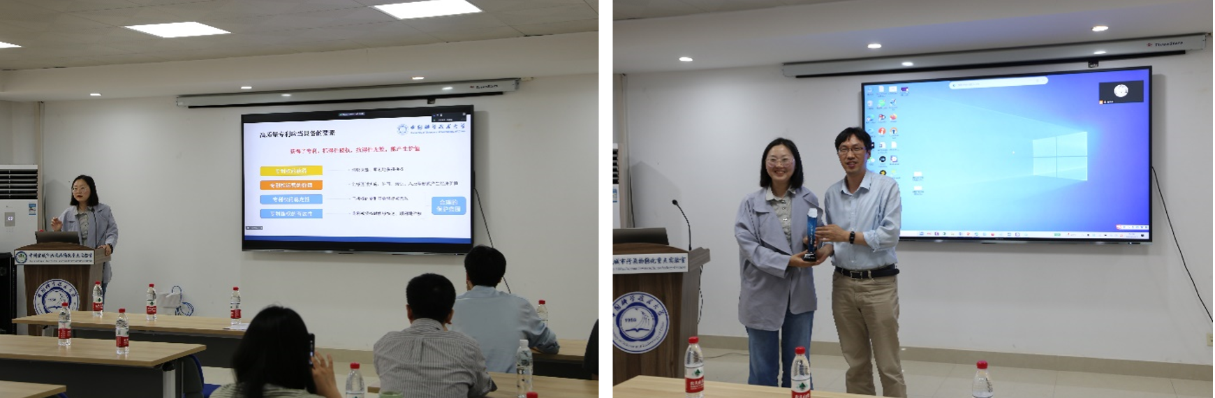 公共事务学院/知识产权研究院副研究员高筱培受邀作题为《如何提升专利申请质量与授权率——高价值专利技术交底书撰写实务》的分享报告。高筱培从专利申请缘由、专利获批条件、专利申请流程、技术交底书撰写与提升专利申请质量五个方面展开介绍,用通俗易懂的语言全方位讲解了专利撰写与申请的核心要点,参会教师均表示受益匪浅。此次报告亦是环境科学与工程系“‘环’师‘境’技发展营”的第三场讲座,报告结束后,环境科学与工程系教工党支部书记盛国平为高筱培赠送了“‘环’师‘境’技发展营”嘉宾奖牌,对其精彩生动的报告表示由衷感谢。