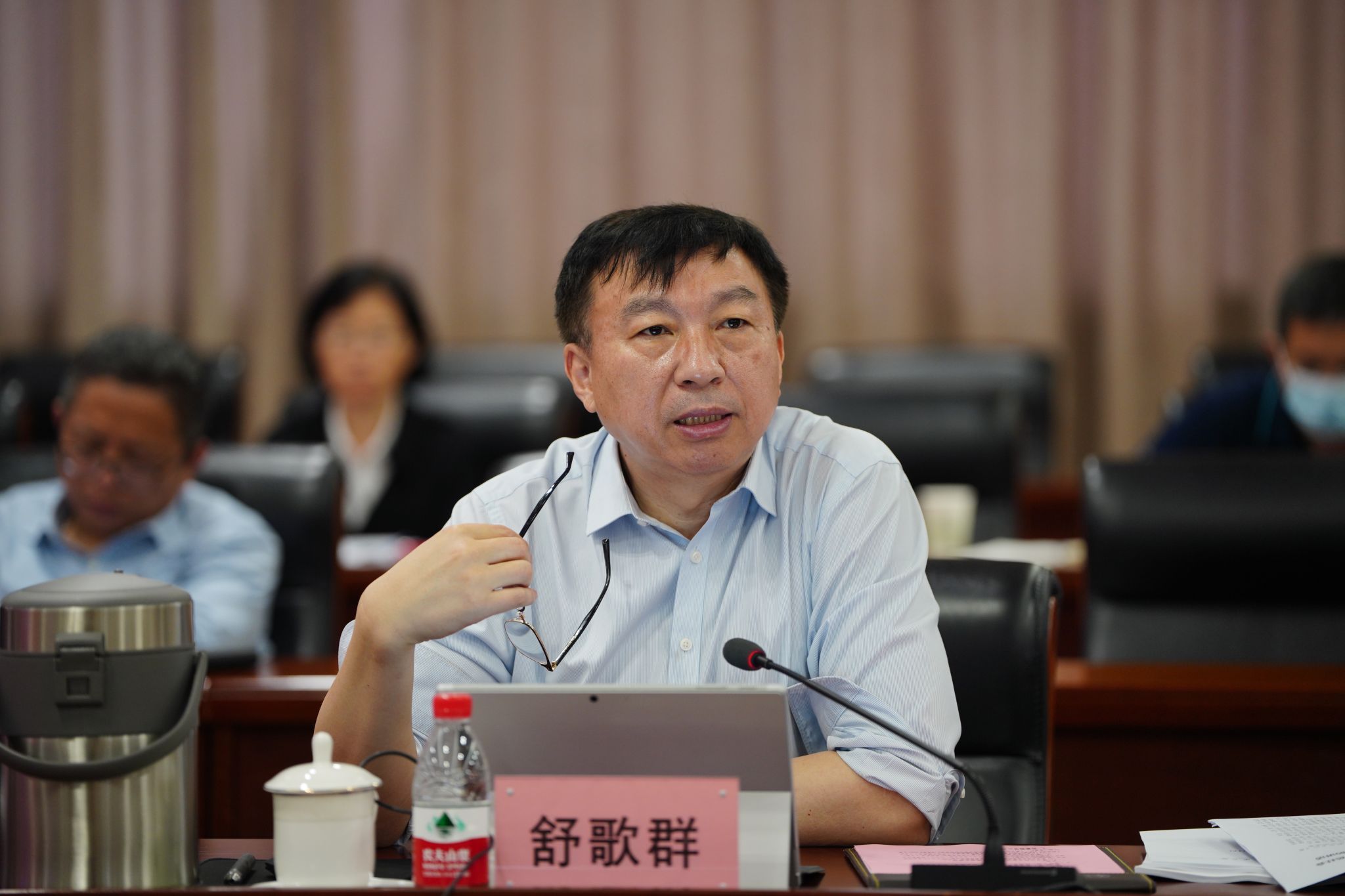 会上,与会人员通过观看新闻视频,集中学习中共中央政治局会议精神,学习习近平总书记在二十届中央财经委员会第一次会议、二十届中央审计委员会第一次会议上的重要讲话精神,学习习近平总书记向2023中关村论坛致贺信精神;自学习近平总书记重要文章《在二十届中央政治局第四次集体学习时的讲话》。舒歌群领学习近平总书记重要文章《在学习贯彻习近平新时代中国特色社会主义思想主题教育工作会议上的讲话》。参会人员围绕学习主题展开深入交流研讨。