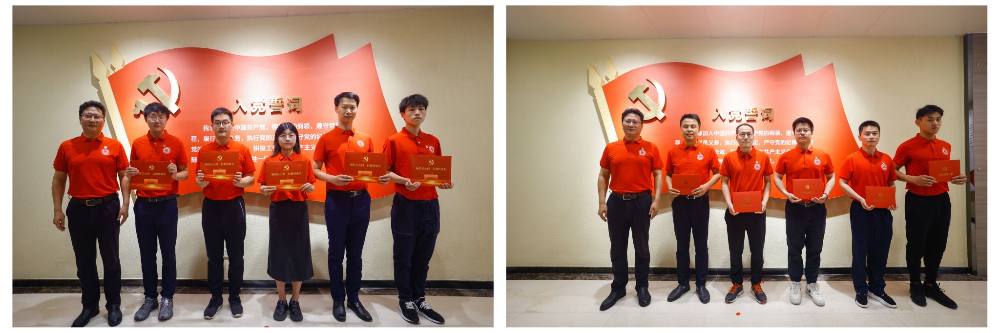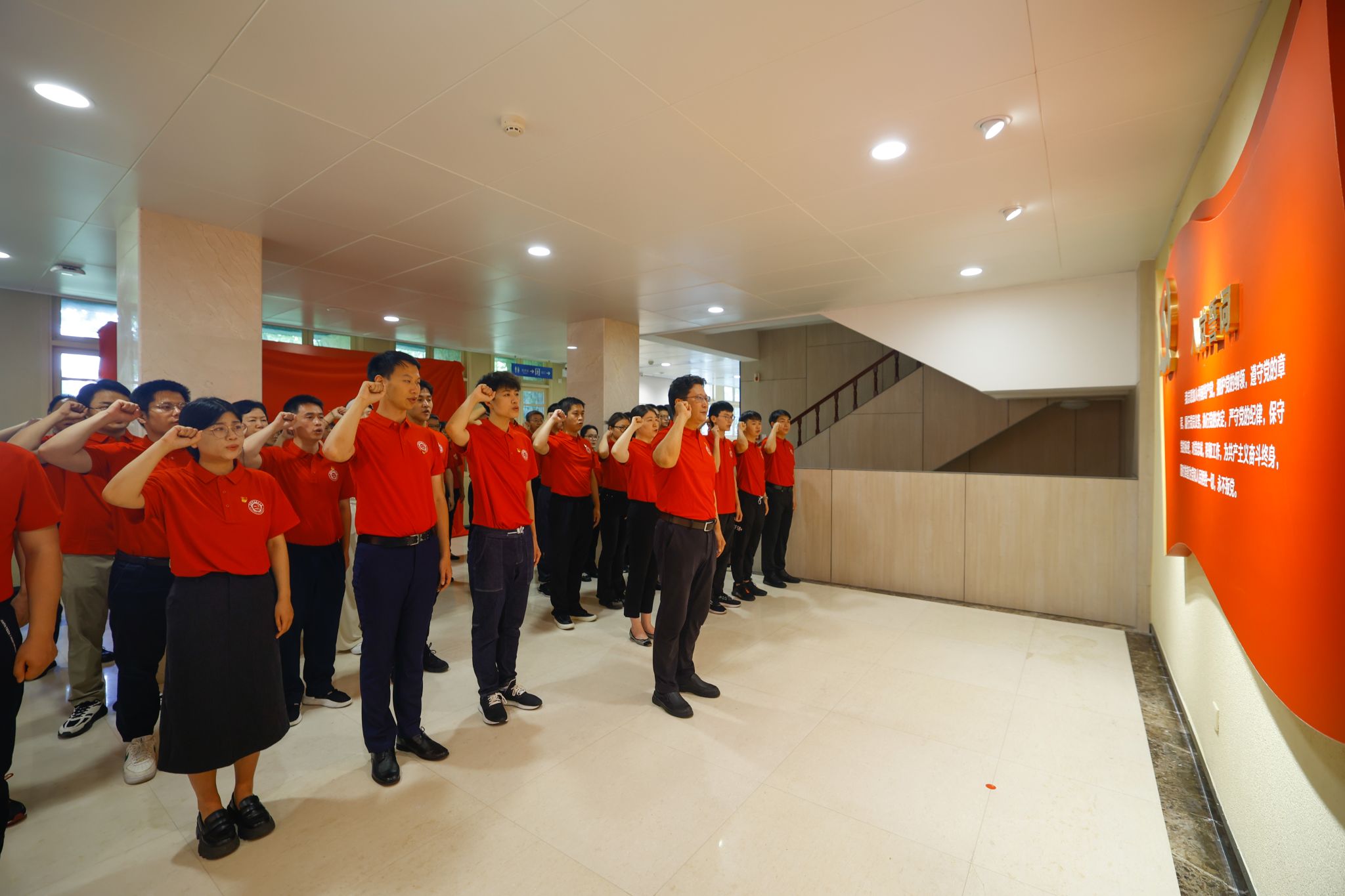 仪式在雄壮的国歌声中拉开帷幕。在蒋一同志的领誓下,新党员庄严宣誓:“我志愿加入中国共产党,拥护党的纲领,遵守党的章程,履行党员义务,执行党的决定,严守党的纪律,保守党的秘密,对党忠诚,积极工作,为共产主义奋斗终身,随时准备为党和人民牺牲一切,永不叛党。”