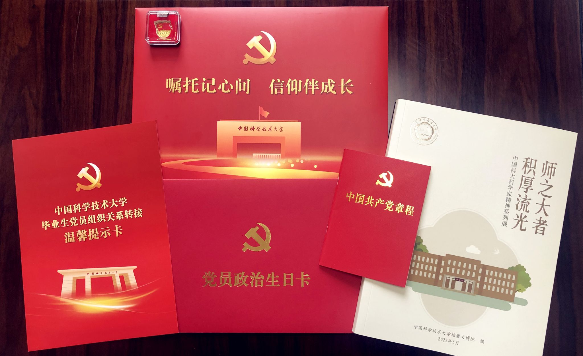 蒋一常务副书记代表校党委以“红色口袋”的方式为毕业生党员代表赠送一枚党员徽章、一本《中国共产党章程》、一封《党员政治生日卡》、一册《师之大者 积厚流光——中国科大科学家精神系列展》和一张毕业生党员组织关系转接温馨提示卡。他勉励毕业生党员“嘱托记心间,信仰伴成长”,在今后的学习、工作中,要始终牢记习近平总书记的殷殷嘱托,增强党员意识,践行党的宗旨,传承中国科大“红专并进、科教报国”精神,充分发挥党员先锋模范作用,为中国式现代化贡献青春力量。同时,他为新党员同志赠送一张政治生日卡,希望各位新党员牢记自己的“第一身份”,时刻以党员的标准严格要求自己,争做一名新时代的优秀共产党员。