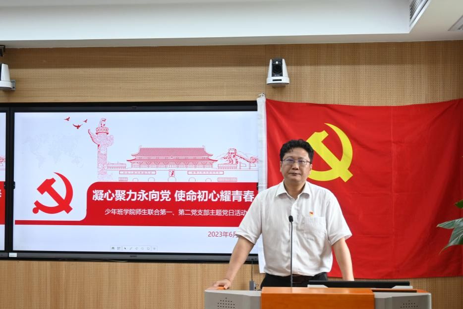 6月25日下午,少年班学院师生联合第一、第二党支部于学院308教室举行“凝心聚力永向党,使命初心耀青春”主题党日活动。校党委常务副书记蒋一出席活动并讲话,少年班学院领导班子、师生联合第一和第二党支部全体党员参加了活动,活动由师生联合第一党支部书记胡玥主持。
