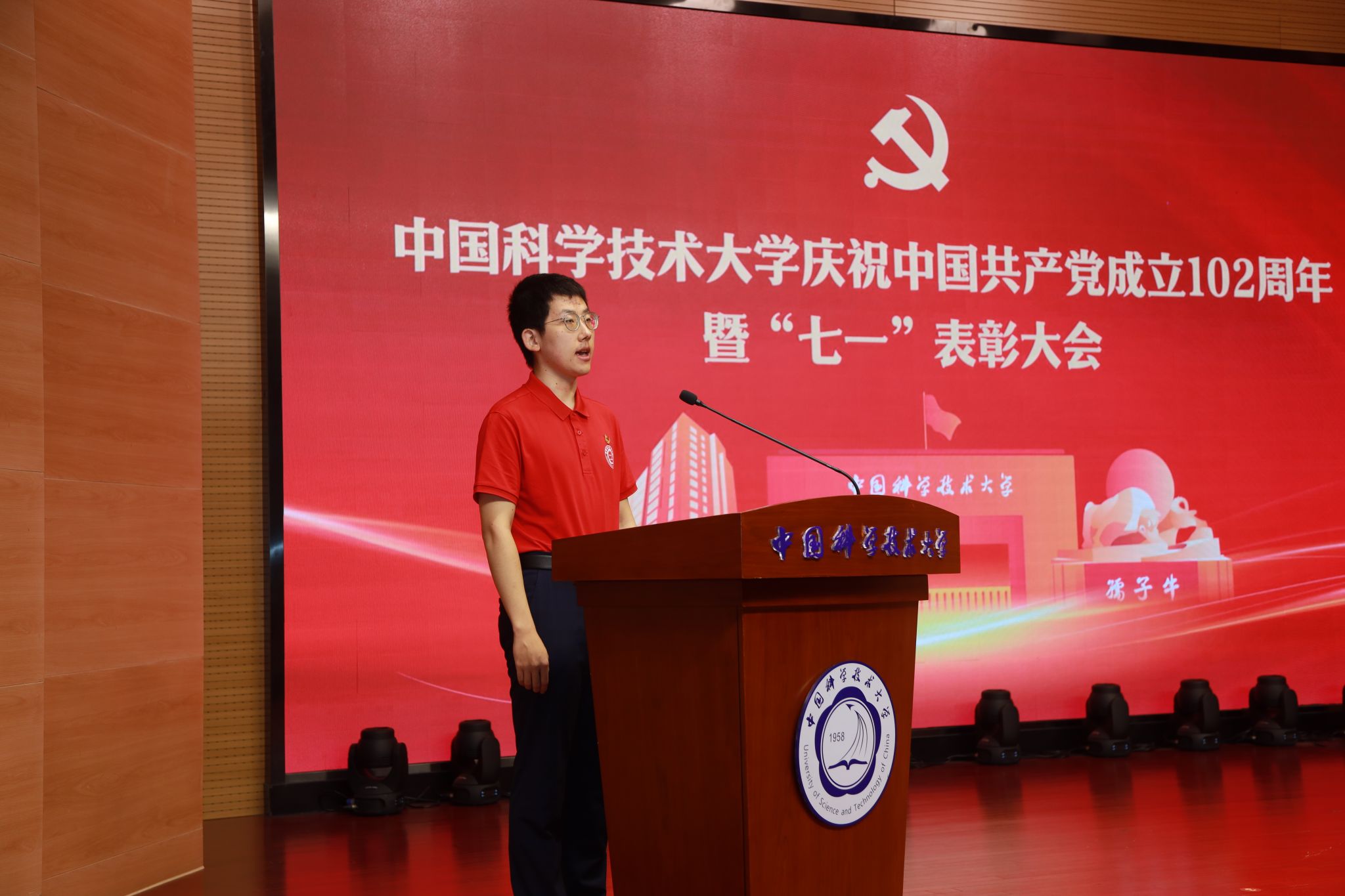 少年班学院2019级本科生陈宝骥代表优秀学生党员发言。陈宝骥表示,钱学森、郭永怀、钱临照等老一辈科学家热爱祖国、无私奉献,用实际行动诠释共产党员初心使命的事迹,启迪青年学子传承“红专并进、理实交融”的校训、“科教报国、追求卓越”的初心。作为新时代青年学子,坚定理想信念,肩负时代使命,心怀“国之大者”,传承红色基因,在可为的时代做有为的青年,学成文武艺,报效祖国和人民,“请党放心,强国有我”!