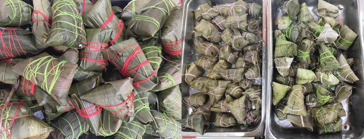 6月22日,在端午节当天,全校共计15个食堂在早餐、中餐、晚餐时段为前来就餐的广大师生免费赠送粽子共计7296个。一个个粽叶飘香的粽子,承载着食堂对师生们的祝福与关爱。一位同学表示:“虽然端午节没有回家和家人团聚,但食堂准备的粽子很美味也很贴心,能和同学们一起过节很温暖!”